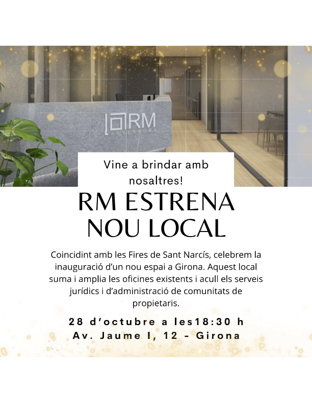 Coincidint amb les Fires de Sant Narcís, RM Assessors celebrarà la inauguració del nou espai a Girona el dimarts 28 d’octubre a les 18.30 h, a l’Avinguda Jaume I, 12.